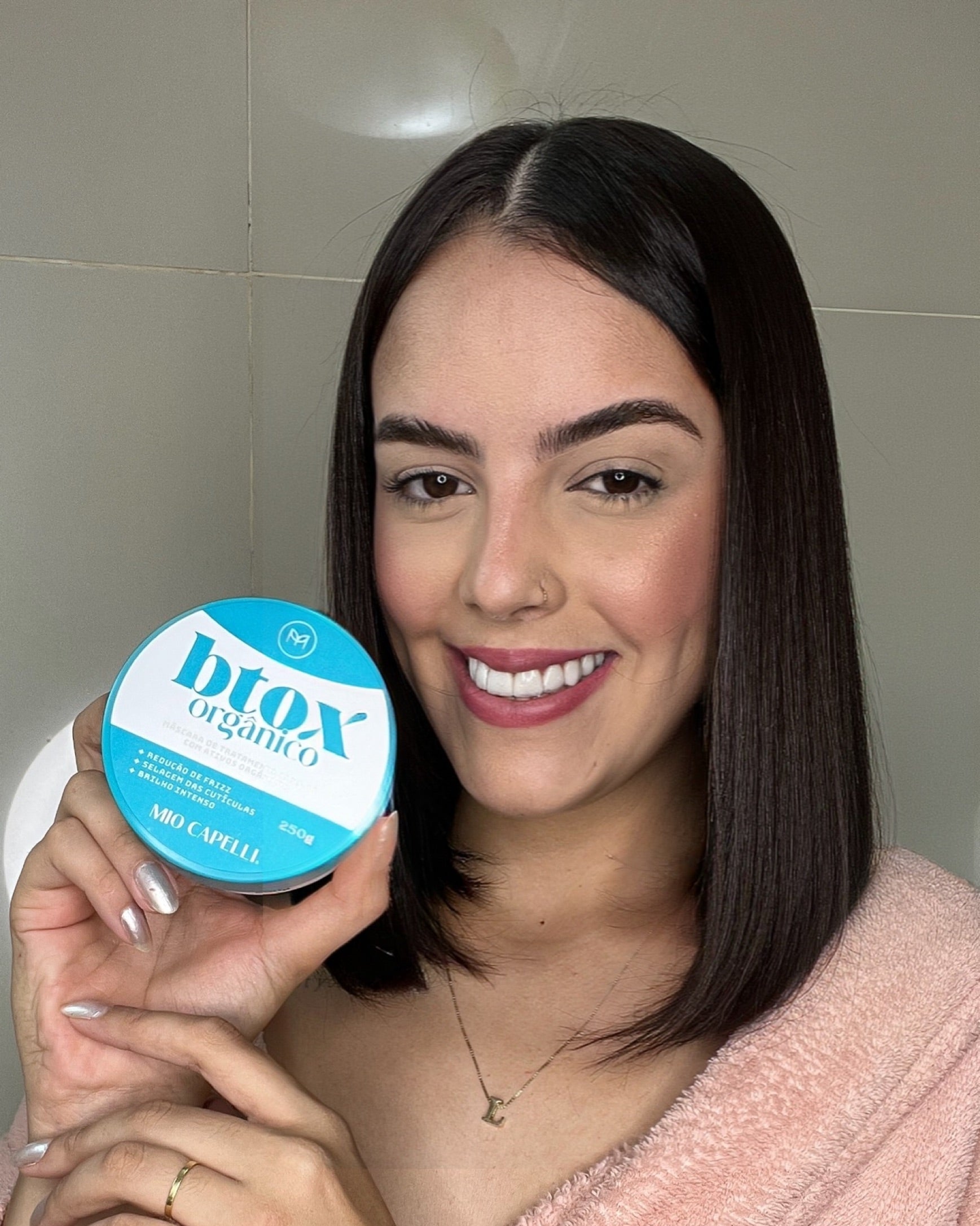 Ele entrega tudo o que você espera de um tratamento e mais. Enquanto age na redução do frizz, o Btox nutre, hidrata e fortalece a fibra capilar, garantindo um resultado leve, natural e duradouro. O cabelo fica solto, brilhante e com aquele toque de salão, mas com o conforto de cuidar em casa.