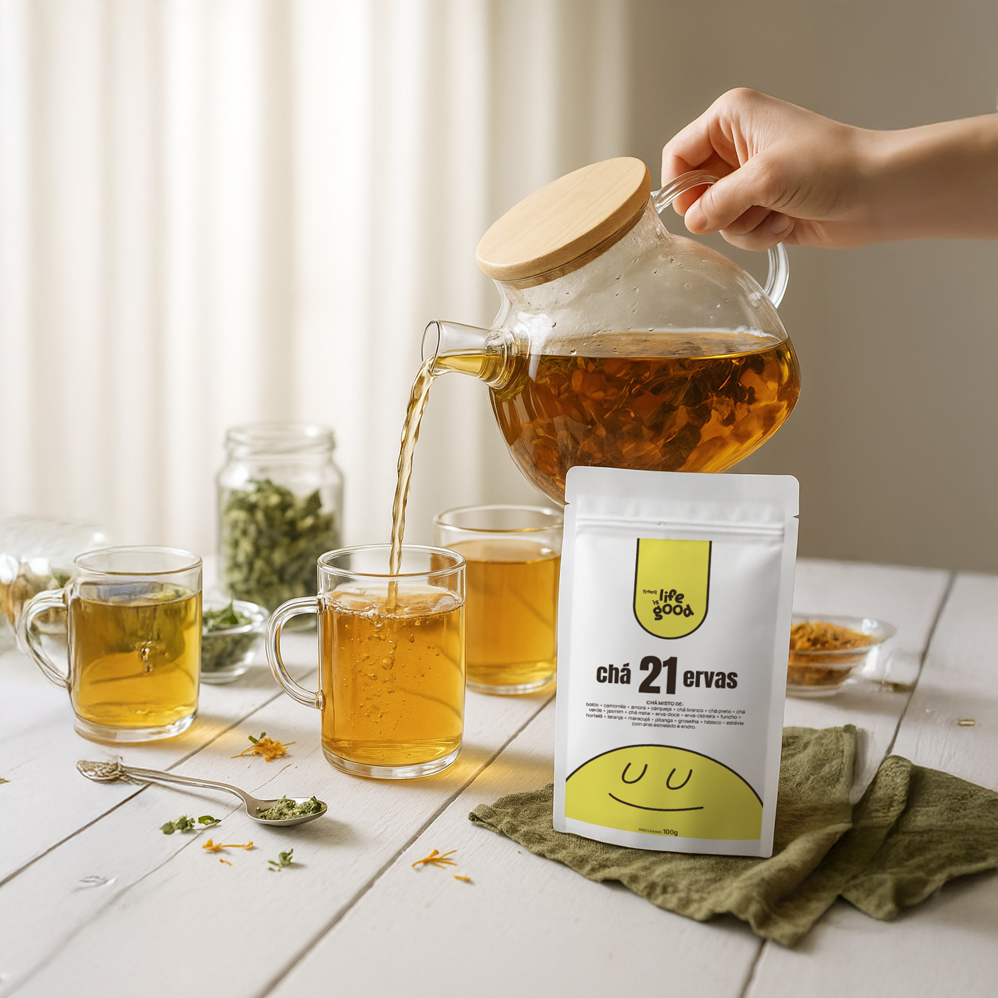 O Chá 21 Ervas Life is Good combina tradição e sabor em uma infusão única.