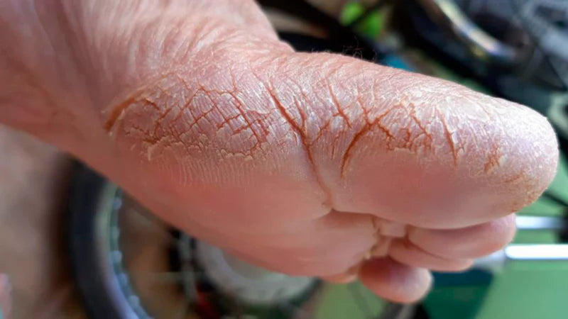 Rachaduras: as rachaduras são causadas por basicamente os mesmos motivos dos calos, a pressão em certas áreas dos pés e a falta de hidratação. A pele espessa se rompe pois perde a elasticidade e a capacidade regenerativa, causando dores e ardência no local.