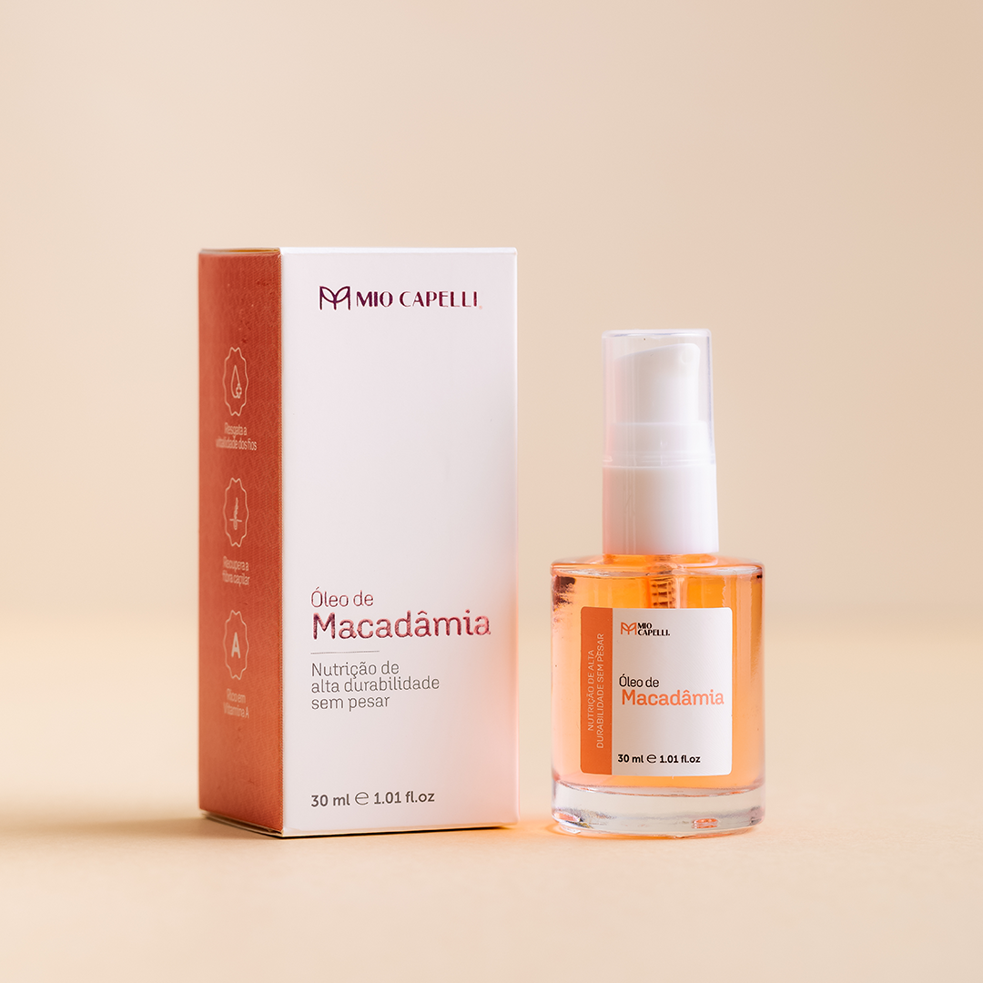 O Óleo de Macadâmia Mio Capelli é o segredo para fios disciplinados, sedosos e com luminosidade incrível. Sua fórmula leve penetra profundamente na fibra capilar, nutrindo de dentro para fora e formando uma película protetora que sela os fios contra agressões externas.