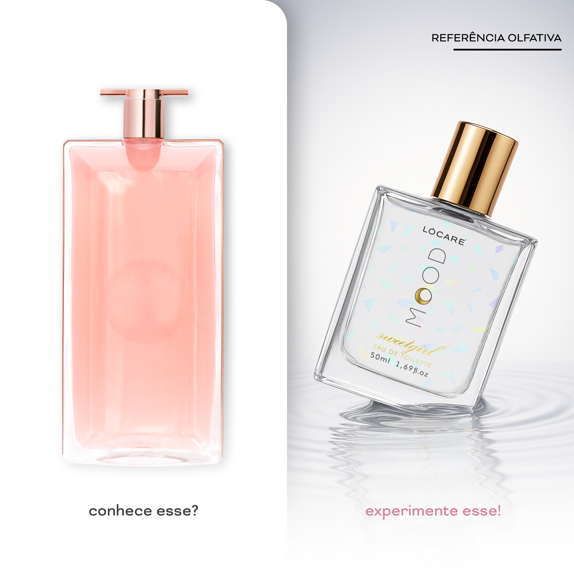 O Sweet Girl é um eau de parfum inspirado no Idôle, da Lancôme. Uma fragrância floral-chipre feminina que combina notas de rosa e jasmim luminosas com um fundo delicado de almíscar branco, baunilha e cedro.