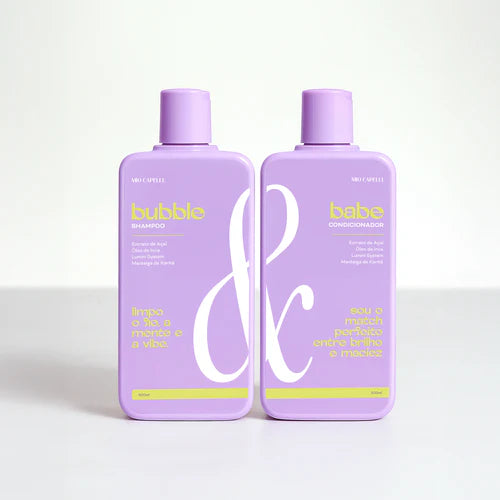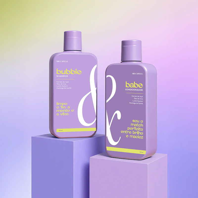 O Duo Bubble & Babe Mio Capelli é a rotina diária ideal para quem quer fios leves, soltos e com brilho saudável. O Bubble remove oleosidade e acúmulo sem ressecar, deixando a raiz limpa e o fio mais leve e o Babe complementa com uma hidratação suave, que desembaraça facilmente, reduz a aspereza e devolve a maciez sem pesar.