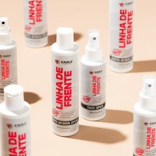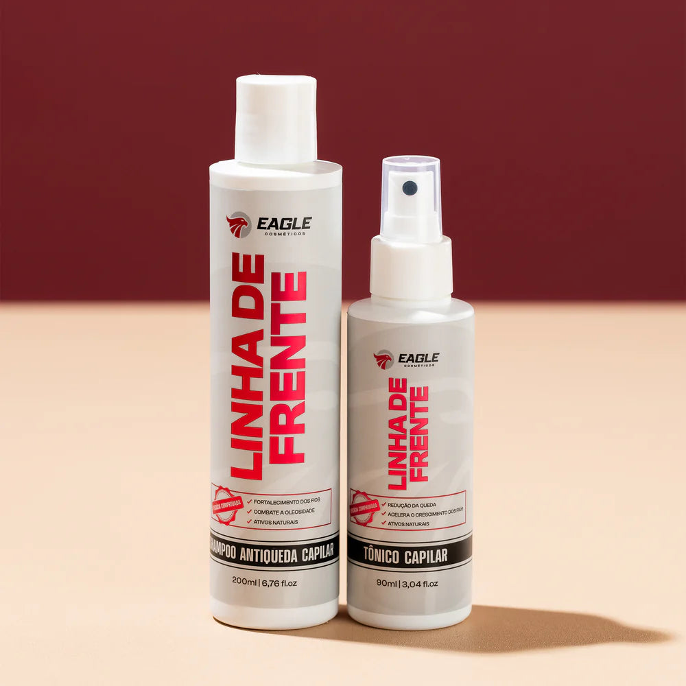 O Shampoo Linha de Frente combina o poder da Aloe Vera, Cavalinha e Castanha da Índia para fortalecer os fios e purificar o couro cabeludo, enquanto o Extrato de Quilaia atua contra a oleosidade excessiva que acelera a queda. Já o Tônico Fortalecedor traz ativos potentes como Equisetum Arvense, Aloe Vera e Quilaia, que estimulam o crescimento natural dos fios e fortalecem o bulbo capilar, evitando o afinamento que leva à calvície.