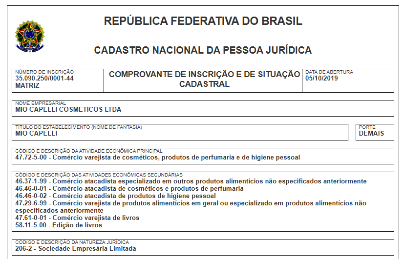 Nossa empresa também possui CNPJ regularizado, o que significa que estamos em conformidade com as leis fiscais e tributárias. Se tiver dúvidas, consulte nosso CNPJ nos órgãos reguladores: 35.090.250/0001-44.