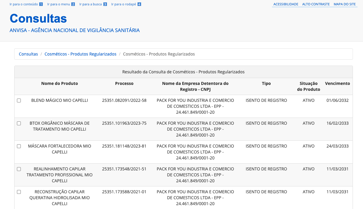 Abaixo você pode conferir alguns registros ativos de nossos produtos. Você também pode consultar diretamente no site da Anvisa.